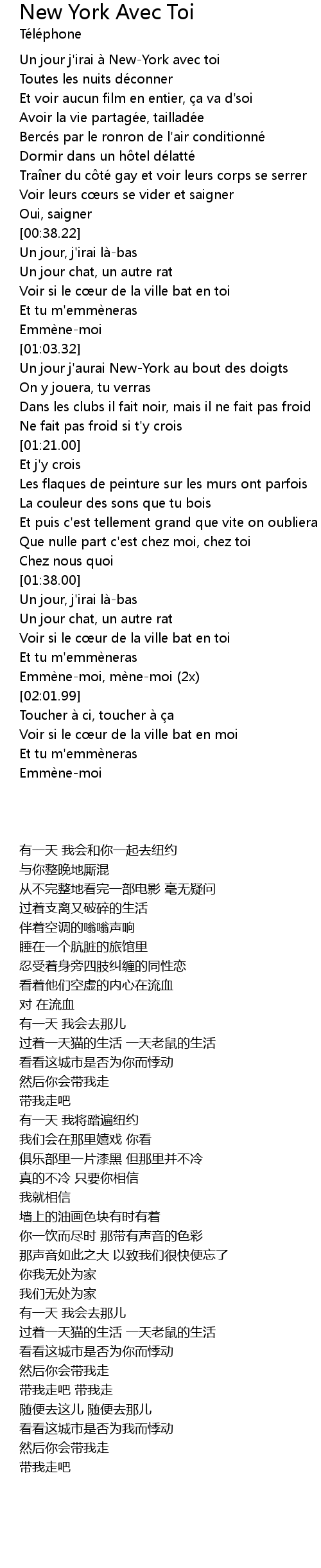 | [00:11.90] | Un jour j' irai à NewYork avec toi |