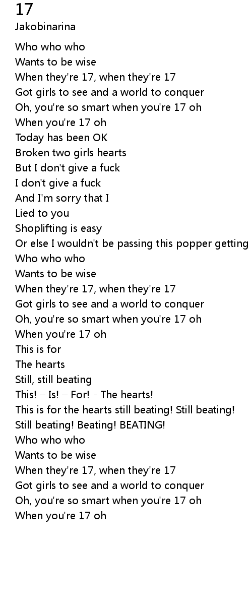| Oh, you' re so smart when you' re 17 oh | |