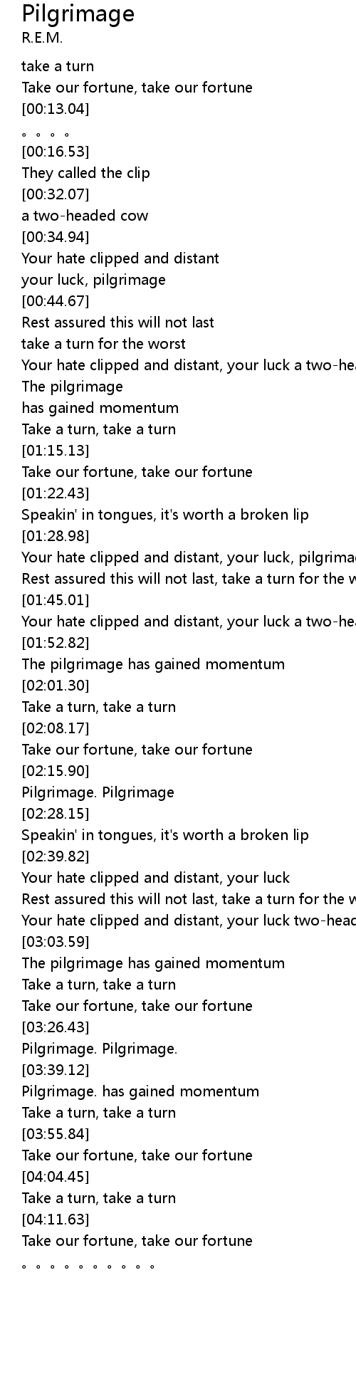 | [02:23.08] | Pilgrimage. Pilgrimage |