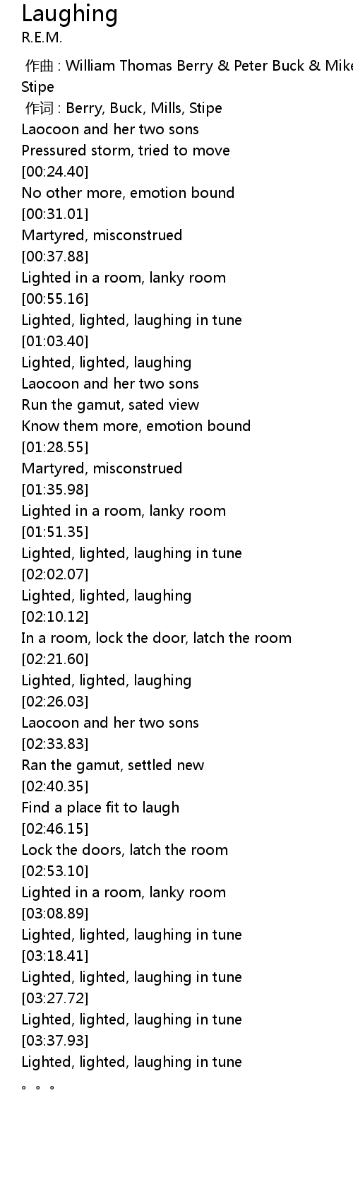 | [00:00.00] | zuò qǔ : William Thomas Berry Peter Buck Mike Mills Michael Stipe |