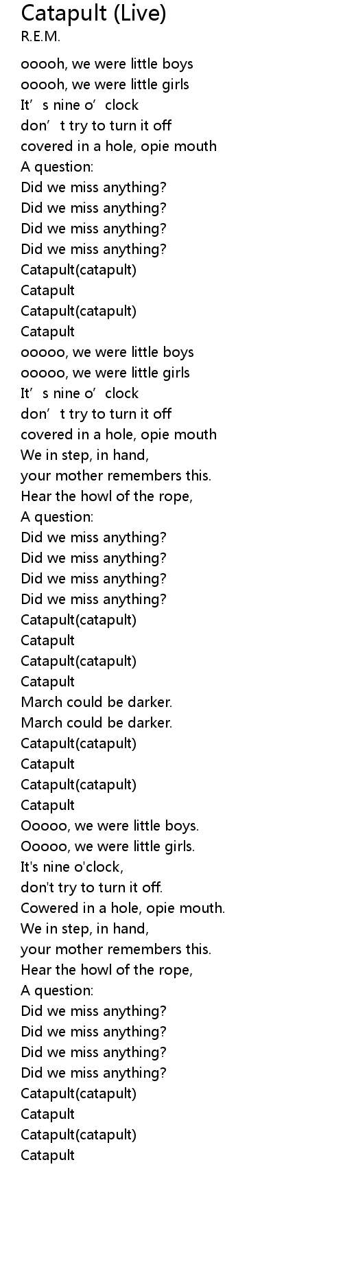 | Song | Catapult (Live) |