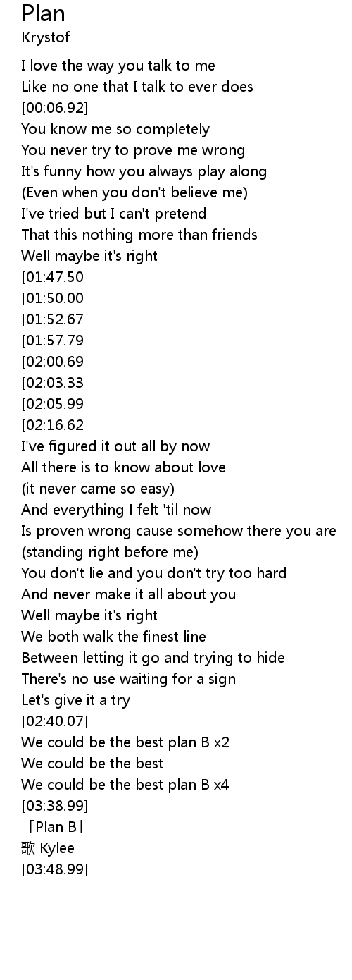 [00:56.67][02:05.99] We could be the best plan B x2