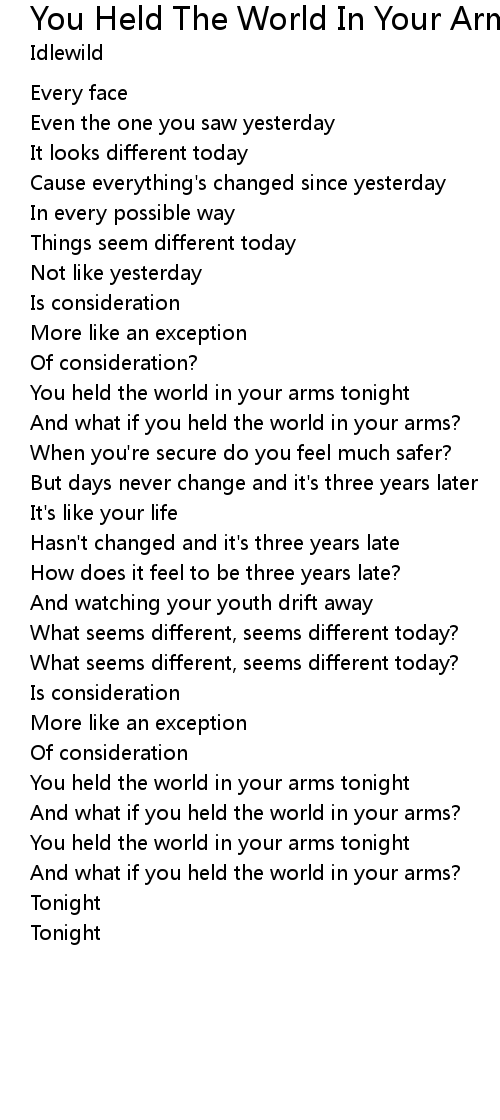 You held the world in your arms tonight |