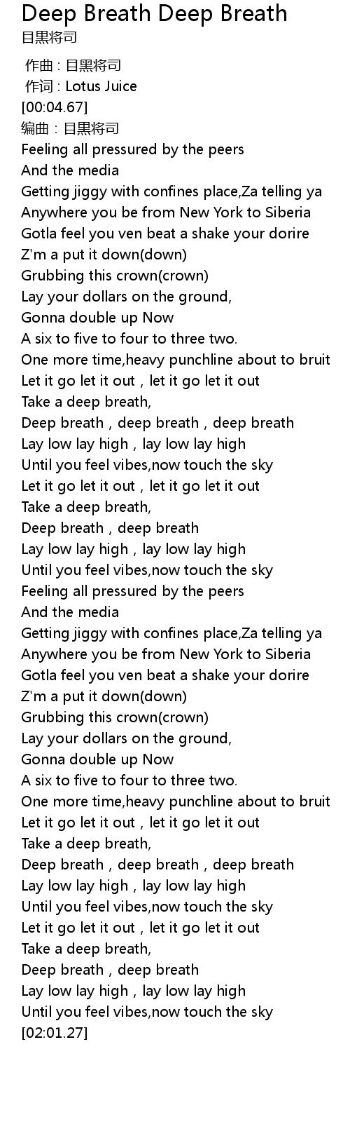 | [01:33.73] | Deep breath, deep breath, deep breath |