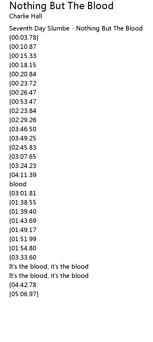 [00:01.12] Seventh Day Slumbe - Nothing But The Blood