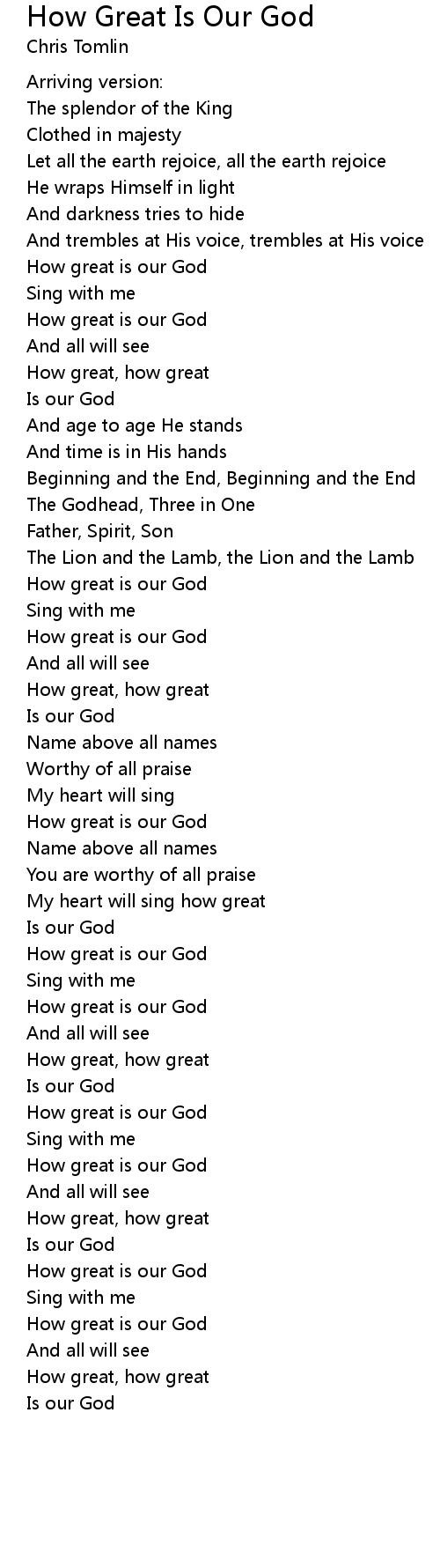 How great is our God |
