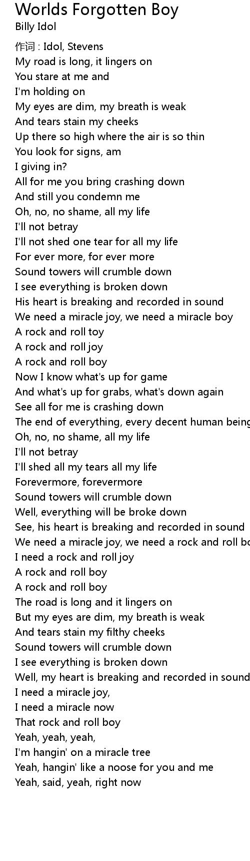 | We need a miracle joy, we need a rock and roll boy | |