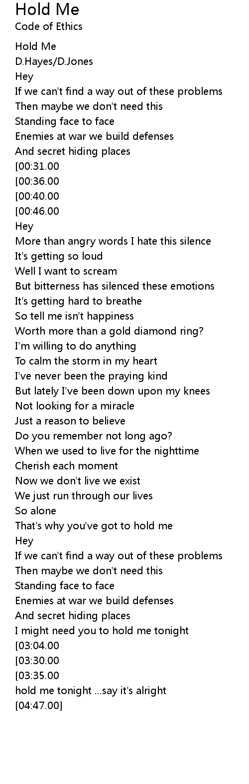 [01:44.00][00:31.00] I might need you to hold me tonight