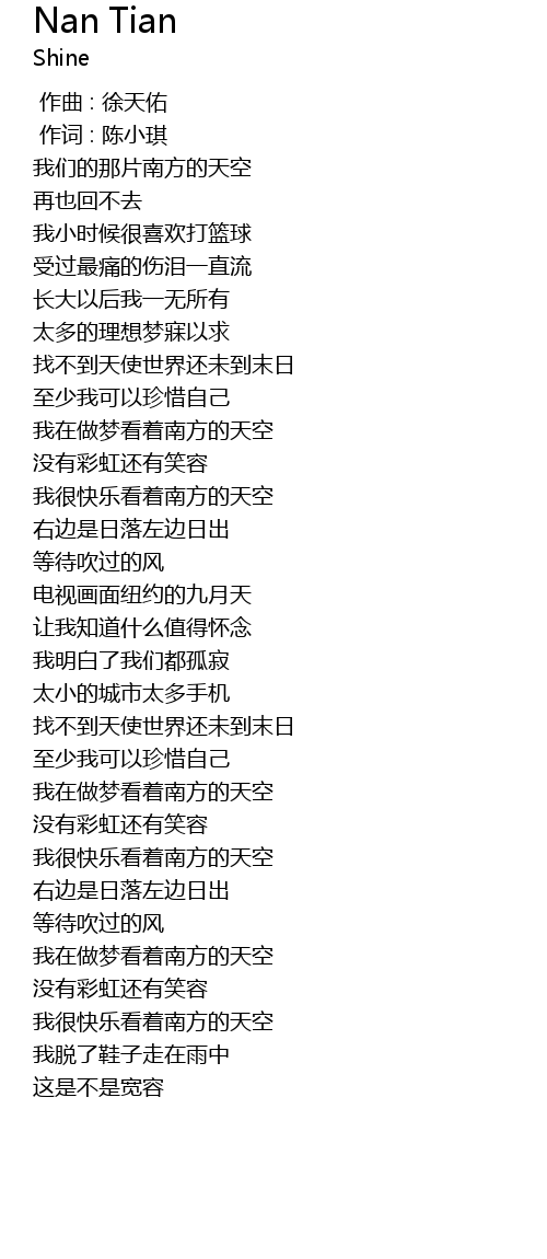 | [02:34.33] | wo hen kuai le kan zhe nan fang de tian kong |
