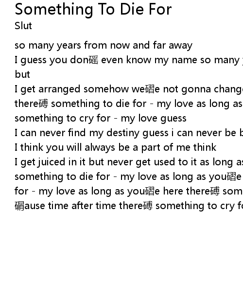 | I get juiced in it but never get used to it as long as you磖e here there磗 something to die for - my love as long as you磖e near there磗 something to cry for - my love as long as you磖e here there磗 something to die for - my love 碿ause time after time there磗 something to cry for - my love my love |