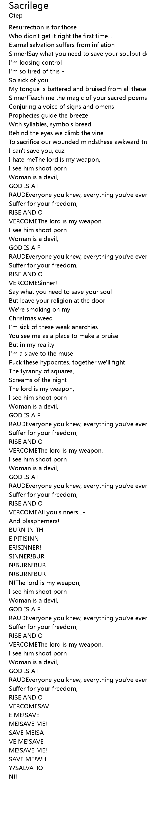 | Sinner!Say what you need to save your soulbut don't fuck with me - | |