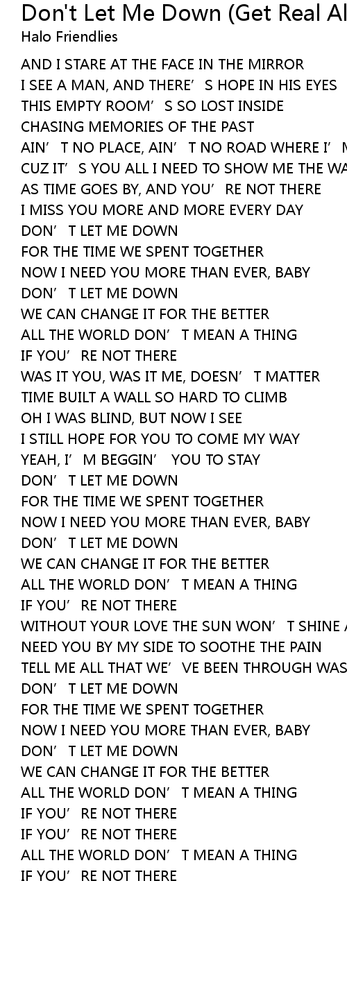 | Song | Don't Let Me Down (Get Real Album Version) |