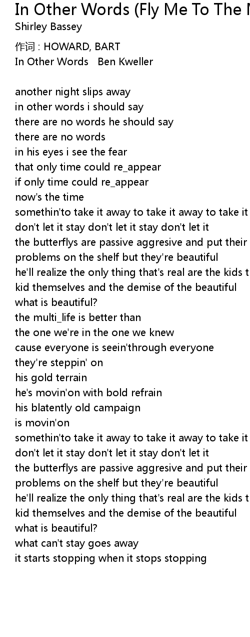| Song | In Other Words (Fly Me To The Moon) |