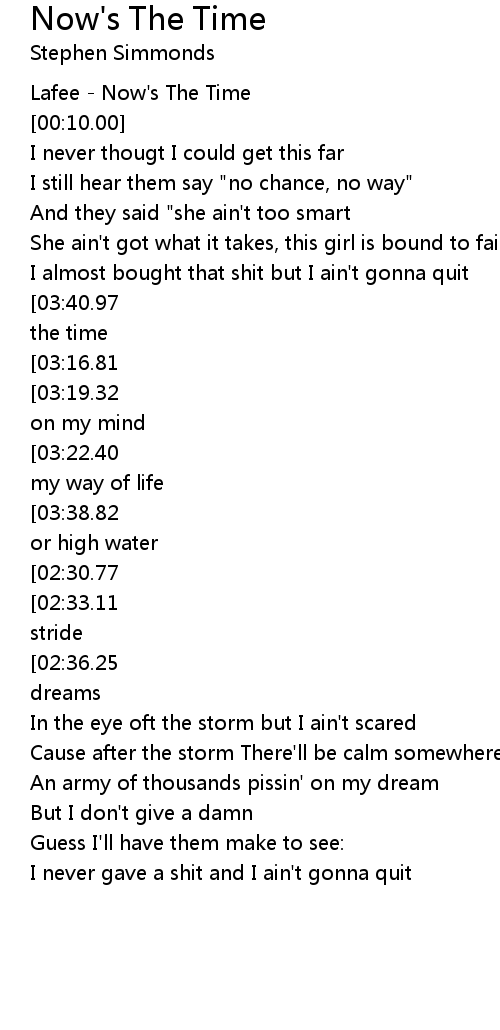 [03:53.89][03:40.97][03:27.85][03:14.26][02:41.60][02:28.50][02:15.41][01:27.44][01:14.51][01:01.14] Now's the time