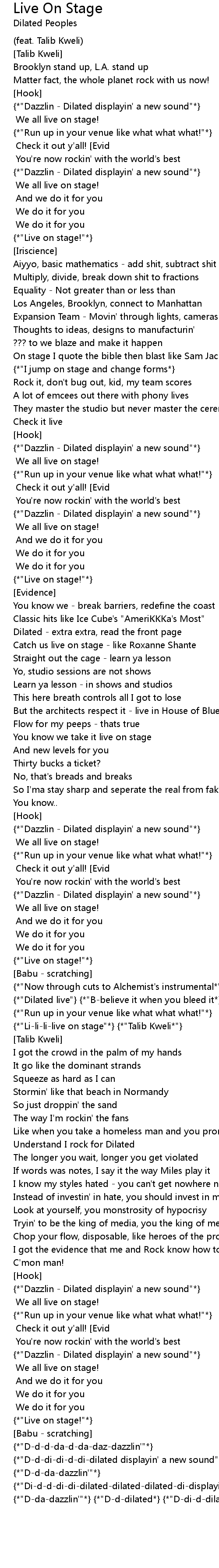 {*"Li-li-li-live on stage"*} {*"Talib Kweli*"} |