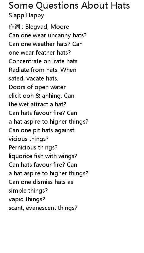 | Song | Some Questions About Hats |