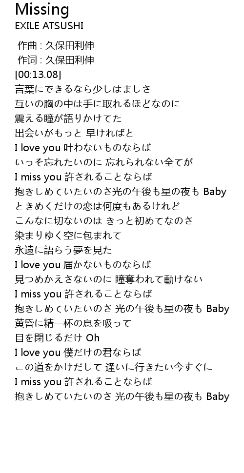 | [03:06.52] | I miss you 許されることならば |
