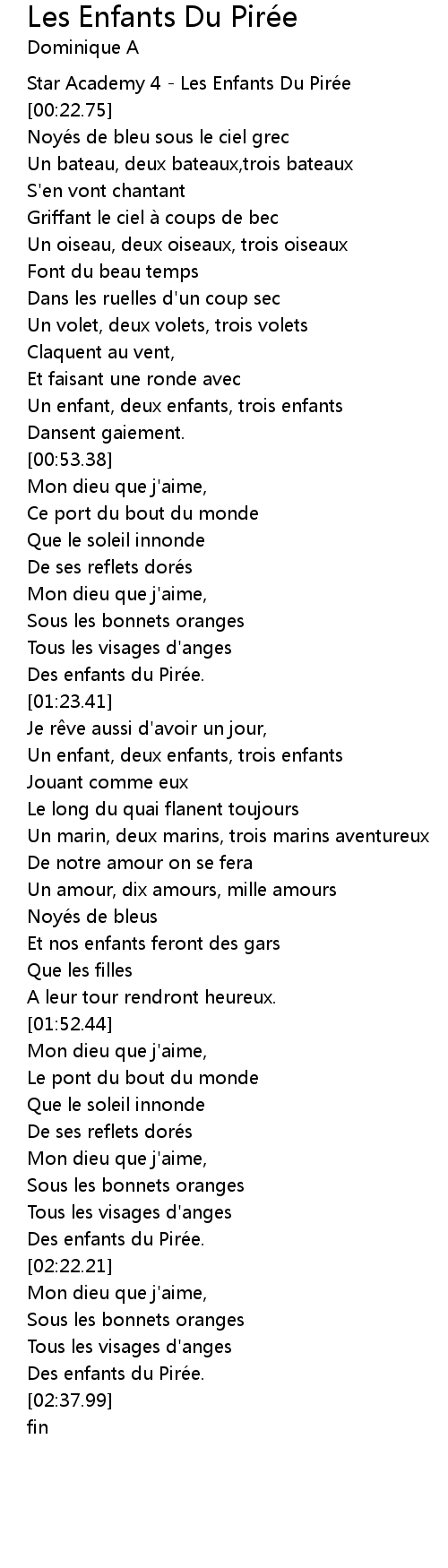 | [02:34.09] | Des enfants du Pirée. |