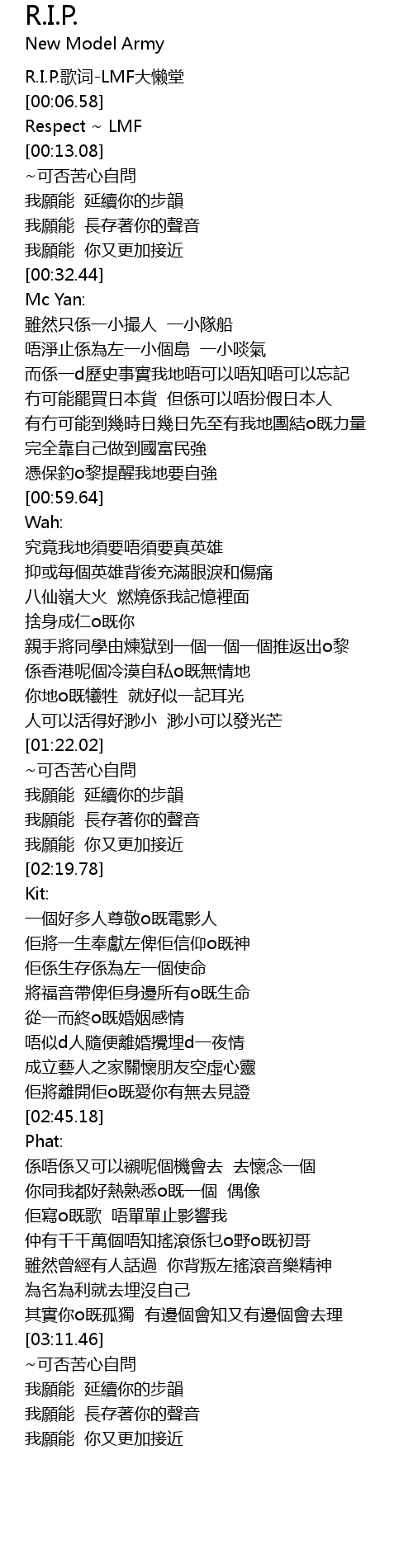 | [00:04.87] | R. I. P. gē cí LMF dà lǎn táng |