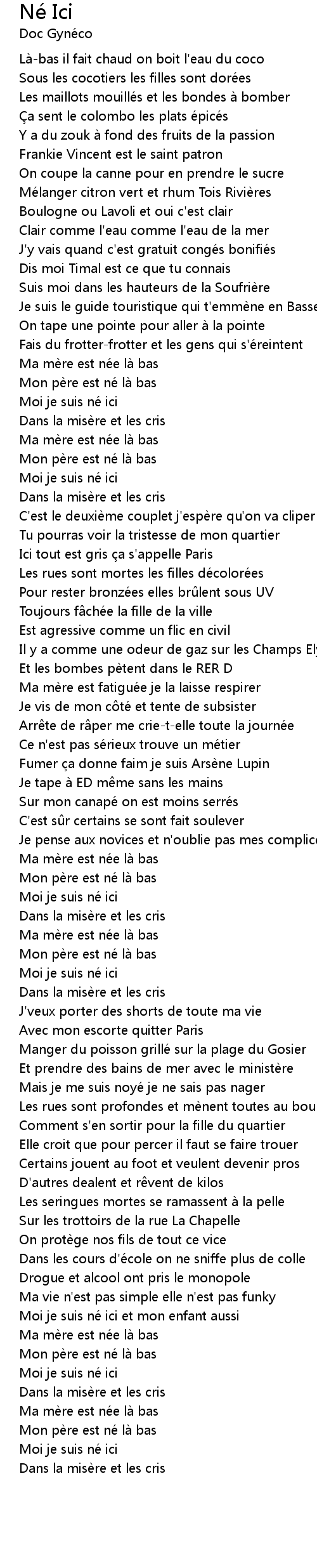 | Song | Né Ici |