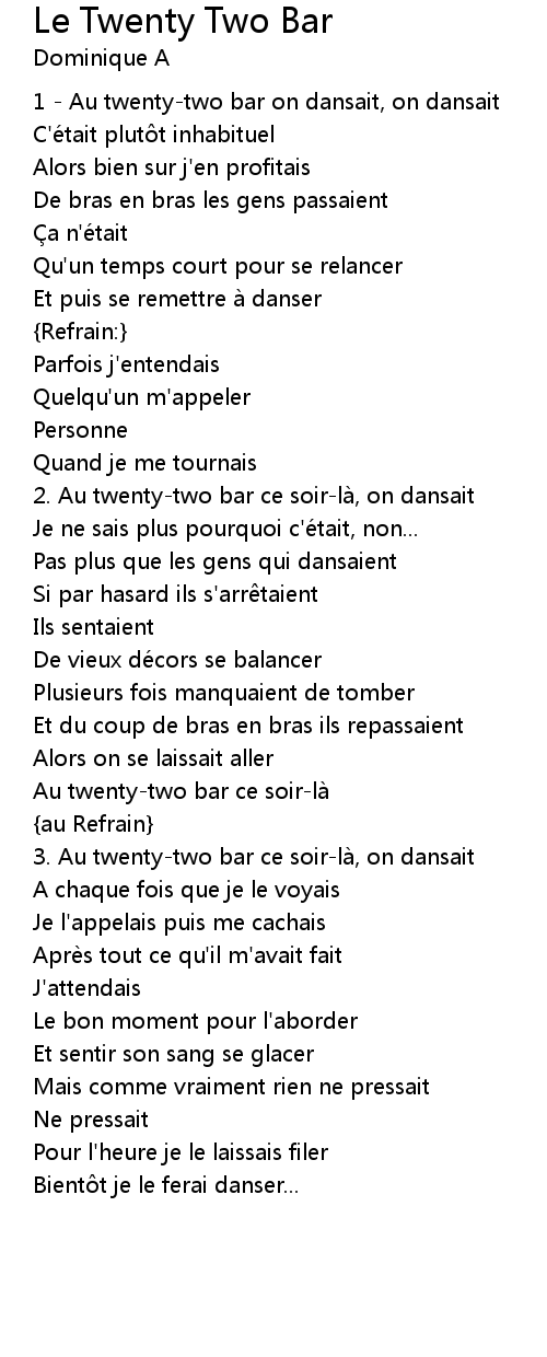 | 1 - Au twenty-two bar on dansait, on dansait | |