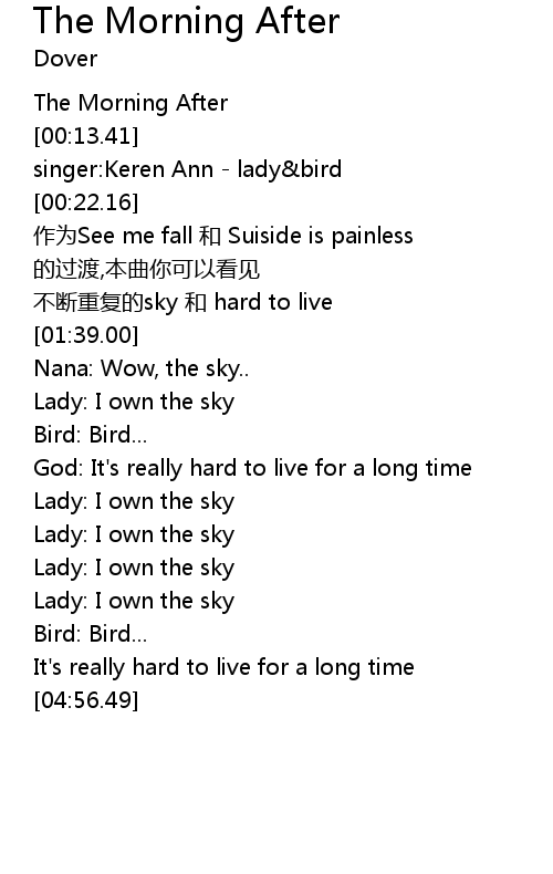 | [01:18.77] | 不断重复的sky 和 hard to live |