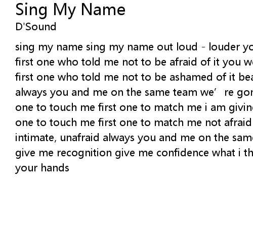 | sing my name sing my name out loud - louder you were the first one to hold me first one who told me not to be afraid of it you were the first one to hold me first one who told me not to be ashamed of it beautiful, intimate, unafraid always you and me on the same team we’re gonna play again you were the first one to touch me first one to match me i am giving in to you you were the first one to touch me first one to match me not afraid of telling you beautiful, intimate, unafraid always you and me on the same team we’re gonna play again give me recognition give me confidence what i thought was dirty is beautiful in your hands |