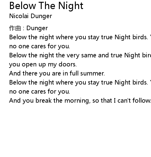 | Below the night where you stay true Night birds. You sing so soft and blue when no one cares for you. | |