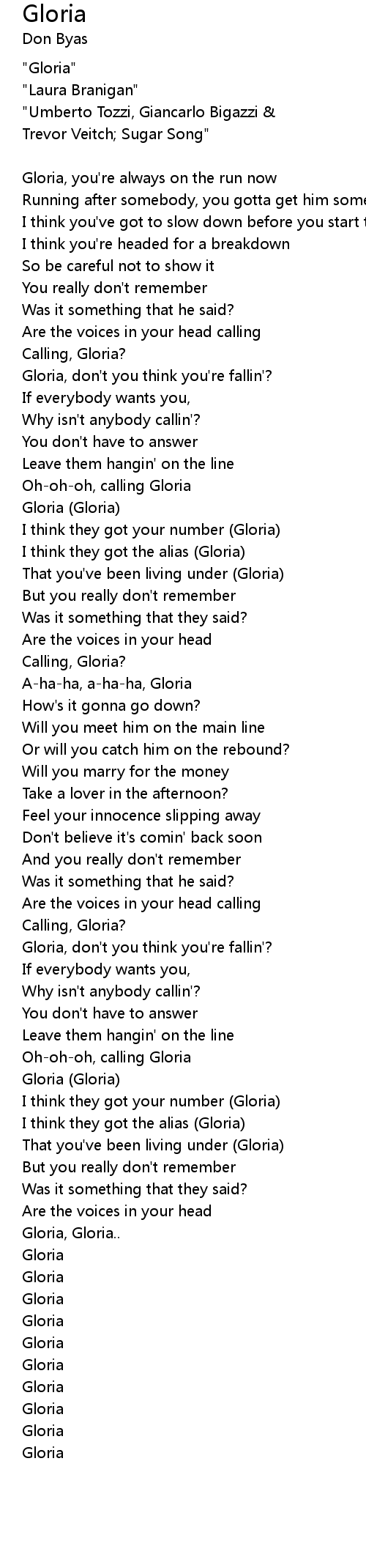 Gloria, don't you think you're fallin'? |