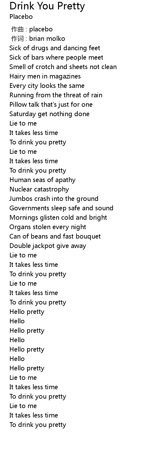 | [02:15.34] | To drink you pretty |