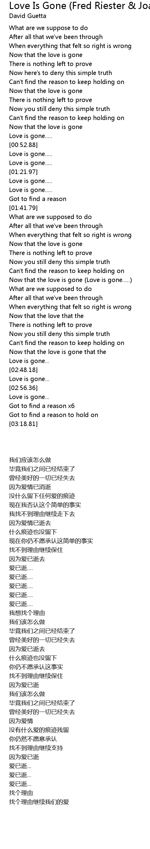 Now that the love is gone (Love is gone.....) |