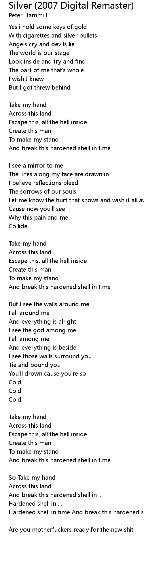 Hardened shell in time And break this hardened shell in time |