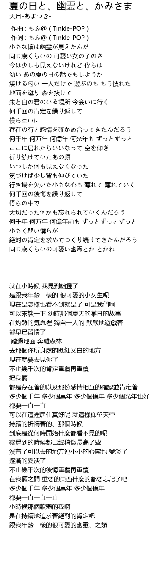 | Song | 夏の日と、幽霊と、かみさま |