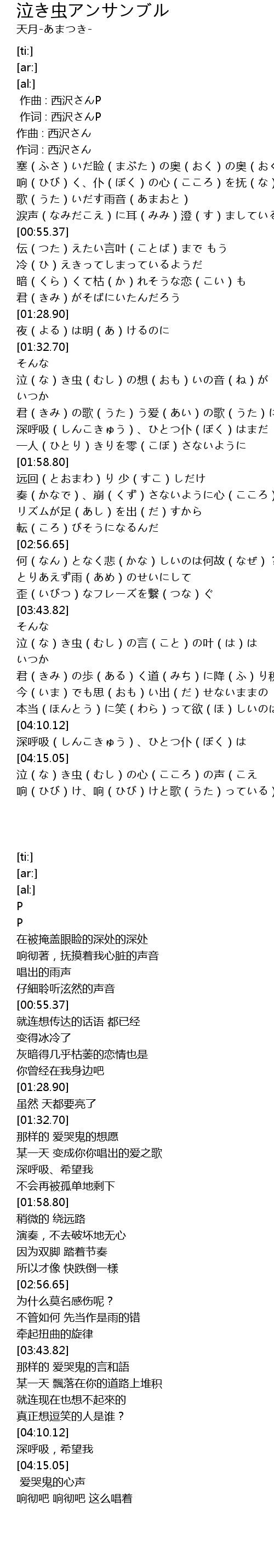 | [00:45.94] | 歌(うた)いだす雨音(あまおと) |