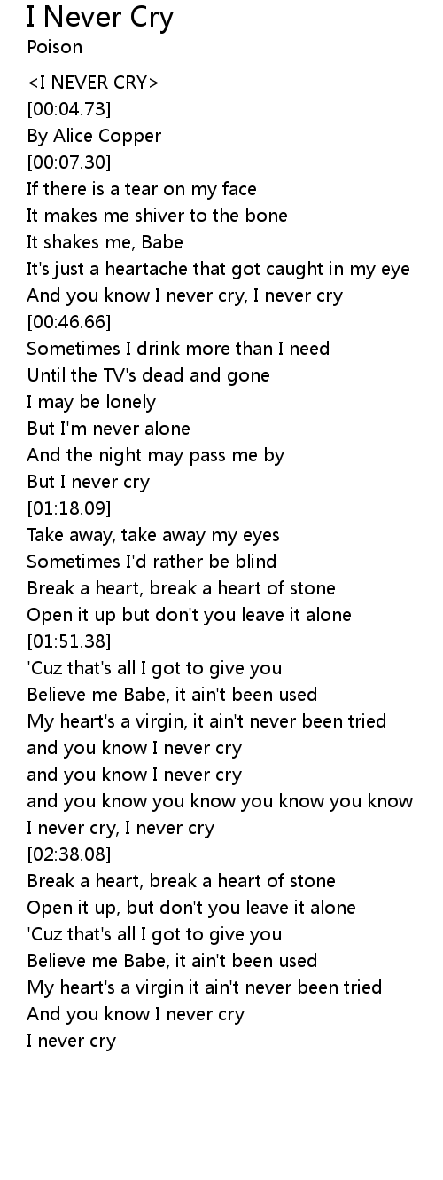 | [03:16.40] | My heart's a virgin it ain't never been tried |