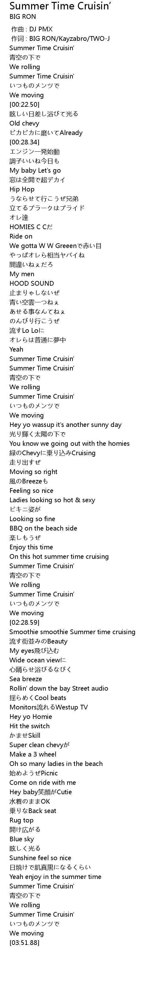 | [02:49.72] | Smoothie smoothie Summer time cruising |