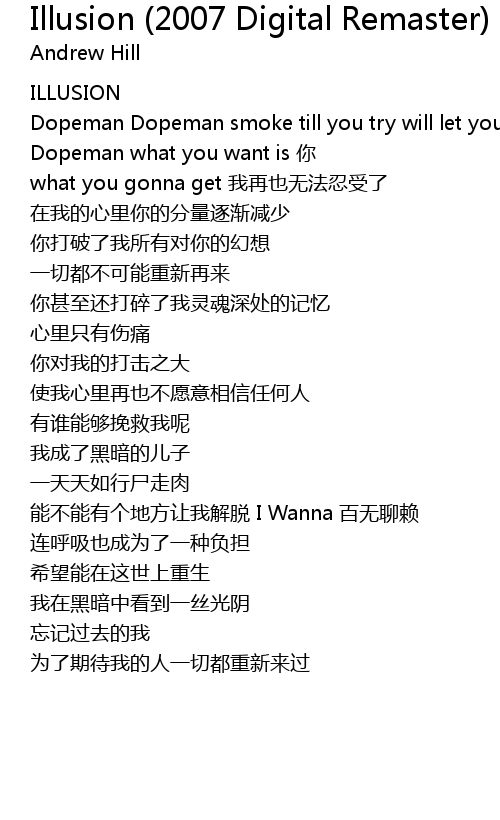 | [00:24.07] | Dopeman Dopeman smoke till you try will let you so high Dopeman Dopeman what you want is 你 |