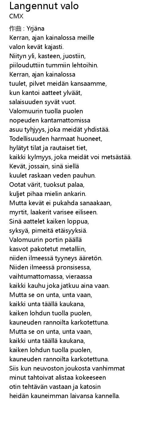 | Song | Langennut valo |
