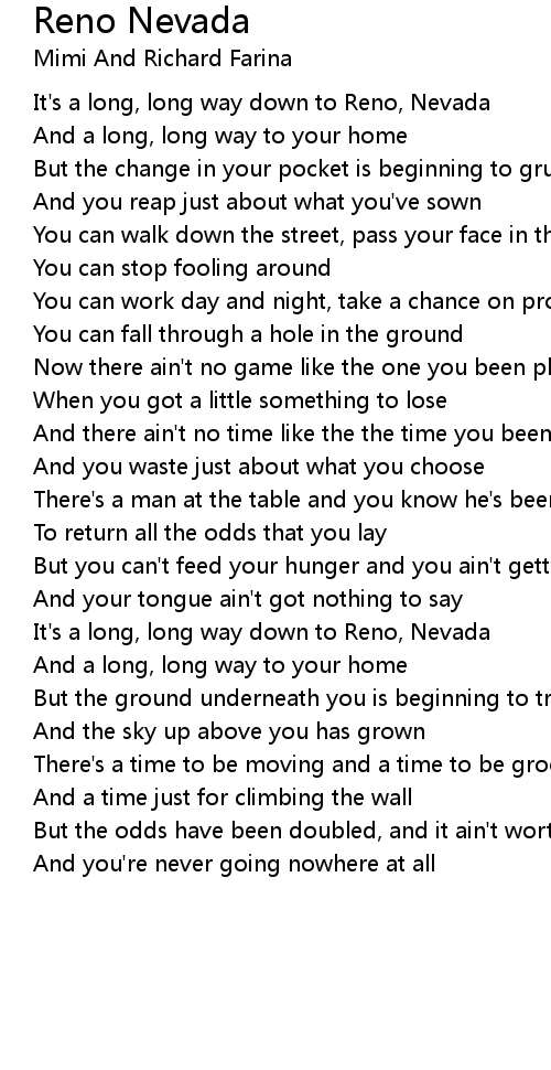 It's a long, long way down to Reno, Nevada |