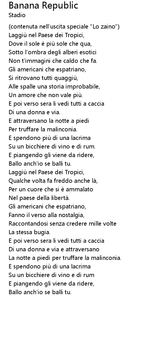 | Song | Banana Republic |