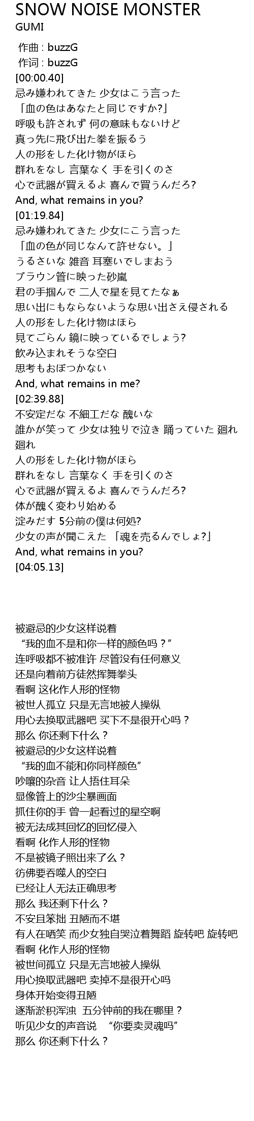 | [00:00.00] | zuò qǔ : buzzG |