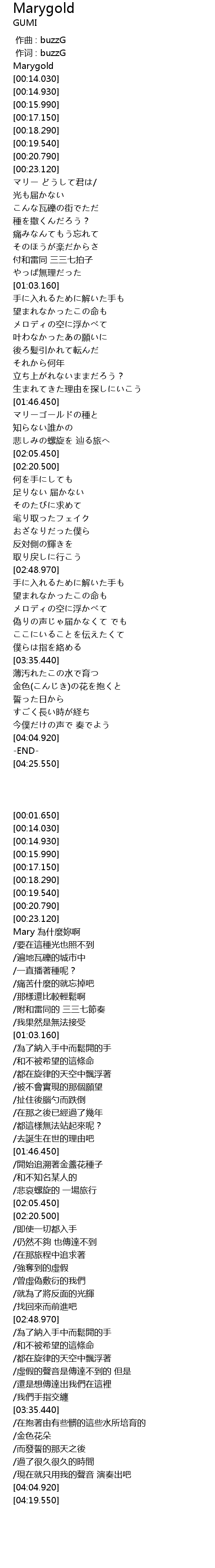 | [00:01.650] | Marygold |