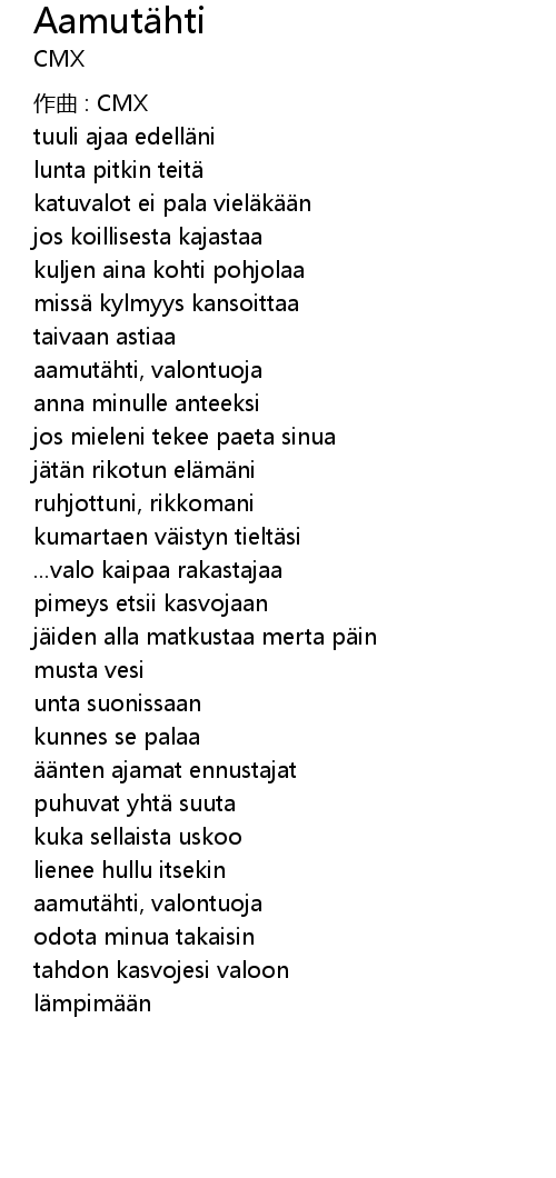 | Song | Aamutähti |
