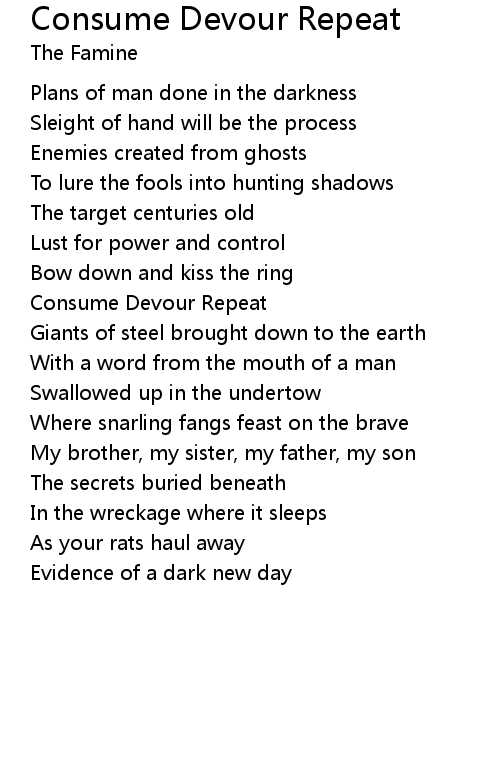 Consume Devour Repeat Lyrics