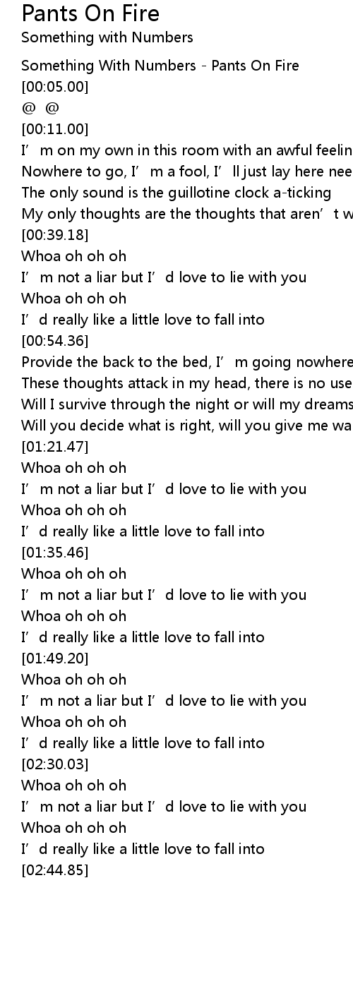 | [00:02.00] | Something With Numbers Pants On Fire |