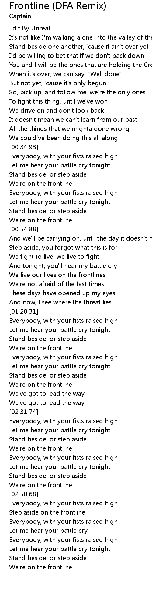 Frontline (DFA Remix) Lyrics