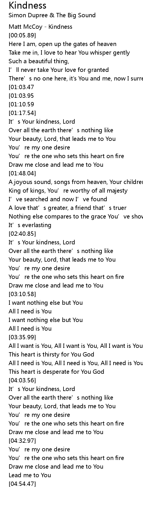 | [02:19.47] | Nothing else compares to the grace You' ve shown me, |