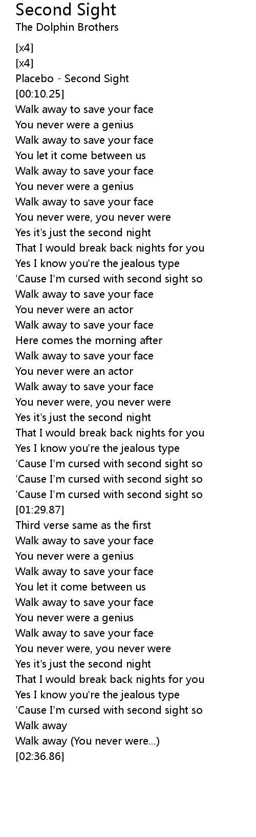 'Cause I'm cursed with second sight so |
