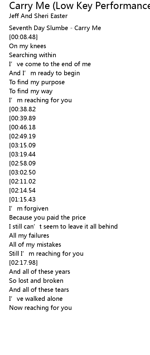 | [03:40.26][03:15.09][02:50.14][01:54.25][00:51.85] | Won’t you carry me |