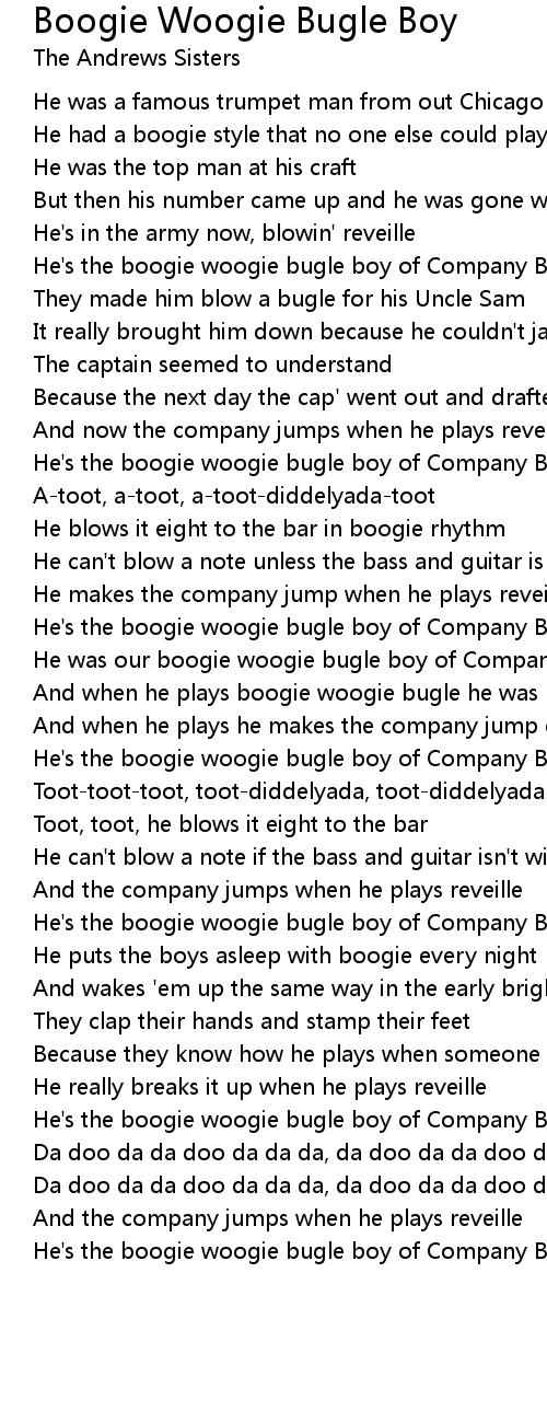He's the boogie woogie bugle boy of Company B |